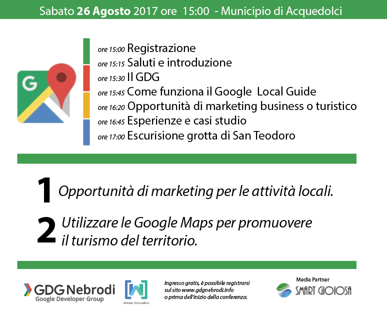 L'evento è ufficialmente organizzato da Google Developer Group Nebrodi e WTM Nebrodi insieme alla ProLoco Acquedolci.